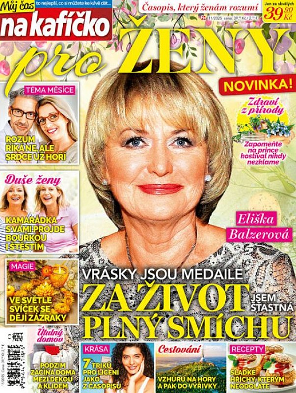 Můj čas na kafíčko pro ženy je nový magazín, který si čtenářky zamilují. Jeho předností je optimismus, přináší radost a pohodu. Známí odborníci poradí v oblasti psychologie, vztahů i práva, citlivě pomohou i v intimních otázkách. Nebudou chybět životní příběhy žen, které se dokázaly vypořádat se svými problémy. Součástí obsahu budou články o současných hereckých osobnostech i českých filmových legendách. Každý měsíc jsou připraveny zajímavé recepty, jednoduché návody a blok článků ze světa zdraví, kosmetiky, bylinek, módy, bydlení i cestování. A své místo najde i tajemno, magie a mystika. Prostě každý měsíc ten správný šálek kávy pro ženy, které už vědí, co od života chtít.