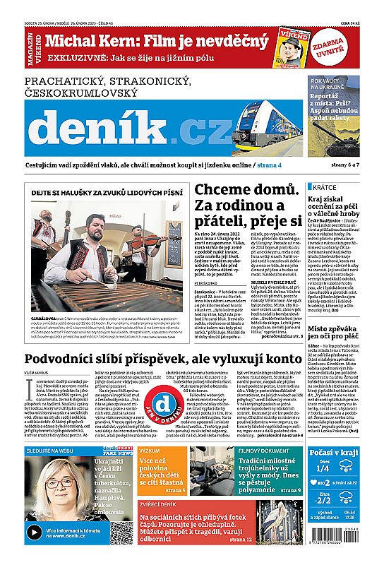 Prachatický, Strakonický, Českokrumlovský deník 25.2.2023