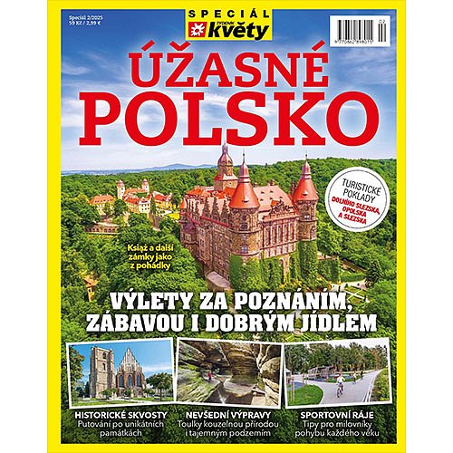 Předplaťte si nyní časopis Týdeník Květy na čtvrt roku za akční cenu a získáte speciál časopisu Květy – Úžasné Polsko v hodnotě 59 Kč jako dárek. Objevte krásy sousedního Polska! Tipy na výlety, zámky, města i přírodu z Dolního Slezska, Opolska a Slezska. Speciál Týdeníku Květy Úžasné Polsko představuje to nejlepší z Dolního Slezska, Opolska a Slezska – tří malebných oblastí těsně za našimi hranicemi. Objevte pohádkové zámky, historická města, přírodní skvosty i místa plná adrenalinu a dobrého jídla. Čeká vás spousta inspirace pro vaše výlety, prodloužené víkendy i dovolené kousek od Česka. Vychází 30. 10. 2025.Turistické poklady Dolního Slezska, Opolska a Slezska. Výlety za poznáním, zábavou i dobrým jídlem. Nevšední výpravy – toulky kouzelnou přírodou i tajemným podzemím. Sportovní ráje – tipy pro milovníky pohybu každého věku. Historické skvosty – putování po unikátních památkách. Książ a další zámky.
