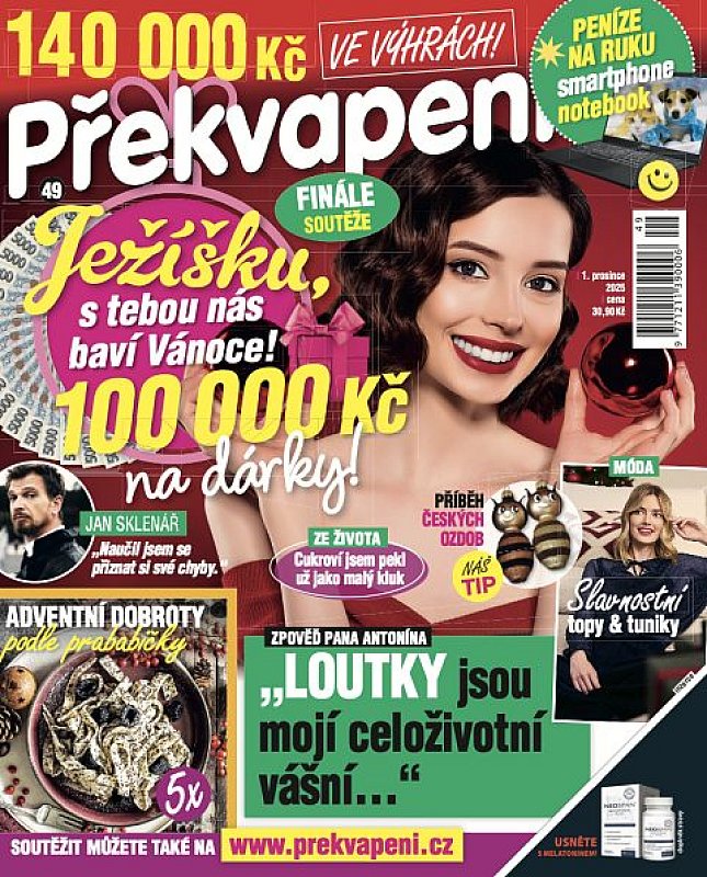 Předplaťte si nyní časopis Překvapení + Speciál Překvapení na celý rok a získejte knihu Vánoce pro Vaše ruce v hodnotě 479 Kč jako dárek. Vánoční kniha vám přináší sváteční náladu a na každé straně návody a postupy na zdobení, pečení, balení dárků i pohoštění. To nejlepší z Kreativu v luxusní vazbě jako zásoba nápadů pro spoustu let dopředu. 300 stran lásky a tvoření. Vyšlo pod značkou Kreativ. Vyšlo v roce 2023. Prodení cena 479 Kč. Cena zahrnuje poštovné a balné.