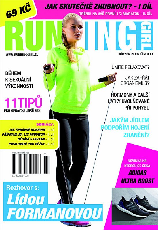 V březnovém čísle jsme ke stávajícím seriálům přidali další dva – PŘIROZENÝ BĚH a JAK SKUTEČNĚ ZHUBNOUT?. Pavel Baběrád vás provede druhým měsícem profesionální přípravy na 1/2 maraton. Pokud jste propadli Nordic runningu, tak právě pro vás Milan Kůtek připravil druhý díl seriálu. Silvie Kassay pro ty co to s tréninkem myslí opravdu vážně připravila intervalový posilovací trénink. Určitě bych si přečetl velice zajímavý rozhovor s LÍDOU FORMANOVOU a ANTONÍNEM POSPÍCHALEM pořadatelem Barevného běhu. Další článek o běhání do vrchu – JAK OVLIVŇUJE BĚHÁNÍ KOPCŮ VAŠE ZÁVODNÍ ČASY? BĚH NA PÁSU vs BĚH VENKU? I na toto vám dáme odpověd. Nesmíme zapomenout na to JAKÁ JE SPRÁVNÁ SNÍDANĚ PRO BĚŽCE? Stejně tak hodně diskutované téma – JAK TRÉNINKEM SPÁLIT VÍC KALORIÍ. Pokud pořád řešíte, jakým jídelníčkem se řídit máme pro vás velice zajímavý článek VEGANSTVÍ vs PALEO DIETA. Zraněný běžkyně a běžci jistě ocení článek JAKÝM JÍDLEM PODPOŘÍM HOJENÍ ZRANĚNÍ? Zásadní článek časopisu pro lidi bojující s nadváho bude jistě náš nový seriál – JAK SKUTEČNĚ ZHUBNOUT?. Nesmíme zapomenout na oblíbené téma sexu, přinášíme vám hned dva články BĚHEM K SEXUÁLNÍ VÝKONNOSTI… a neméně zajímavý 11 TIPŮ PRO OPRAVDU LEPŠÍ SEX. Po všem tom shonu ať již ve fitku, na běhacím pásu nebo dobrém sexu jistě oceníte článek UMÍTE RELAXOVAT? A to jsme nevyjmenovali vše co na vás ve 4 čísle Running Girl čeká ..