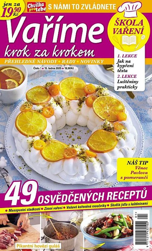Časopis příjemného formátu vychází každý měsíc a najdete v něm recepty na všední den i na svátek, sladké i slané, jednoduché i složité, ale vždycky pěkně krok za krokem rozepsané a nafocené. Vaše okolí bude jednoduše žasnout, jaké vynikající kulinářské specialitky zvládnete připravit.