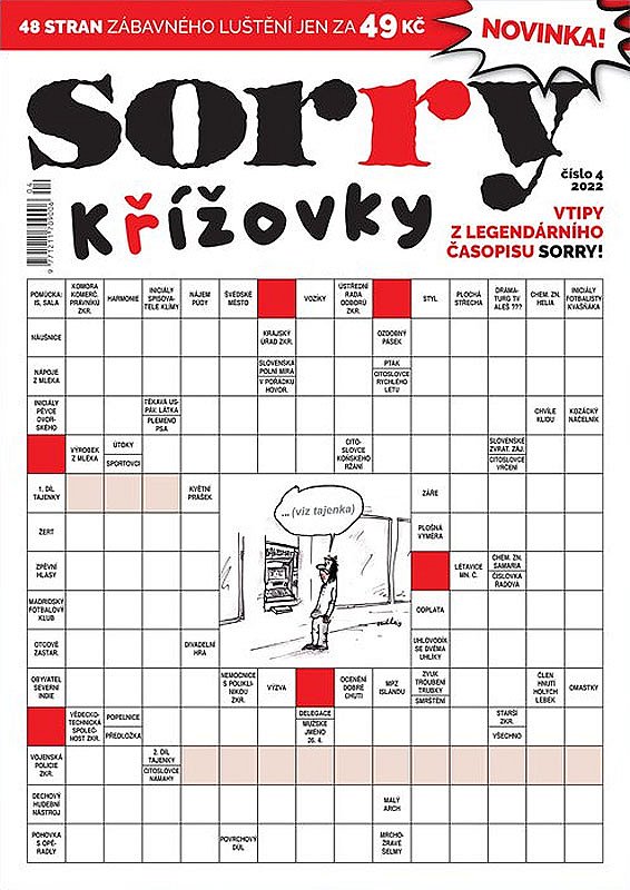 Nový časopis sorry Křížovky nabízí 45 švédských křížovek pro všechny zapálené luštitele. Součástí každé z nich je vtip z legendárního humoristického časopisu sorry.