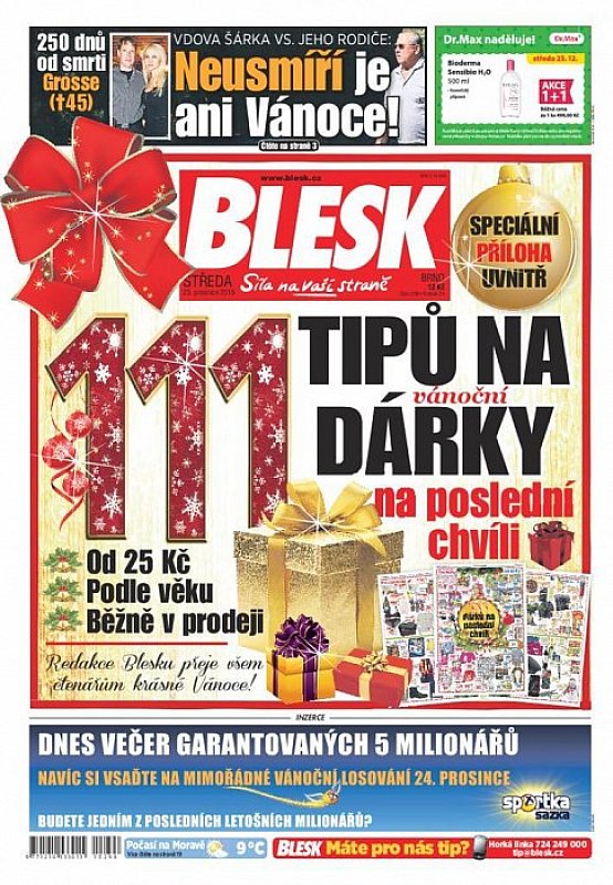 V deníku Blesk ze dne 23.12.2015 najdete mimo jiné i tyto články a témata: