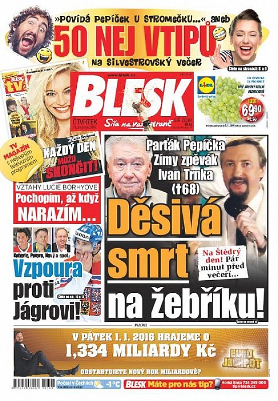 V deníku Blesk ze dne 31.12.2015 najdete mimo jiné i tyto články a témata: