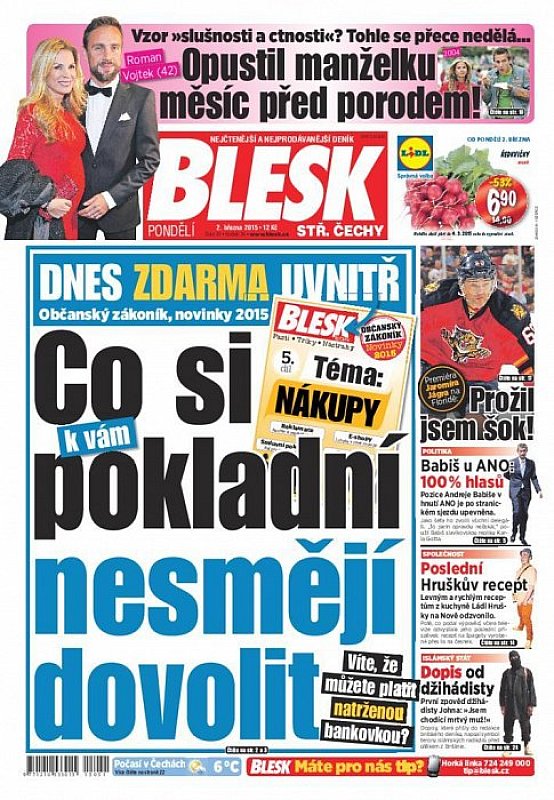 V deníku Blesk ze dne 2.3.2015 najdete mimo jiné i tyto články a témata: