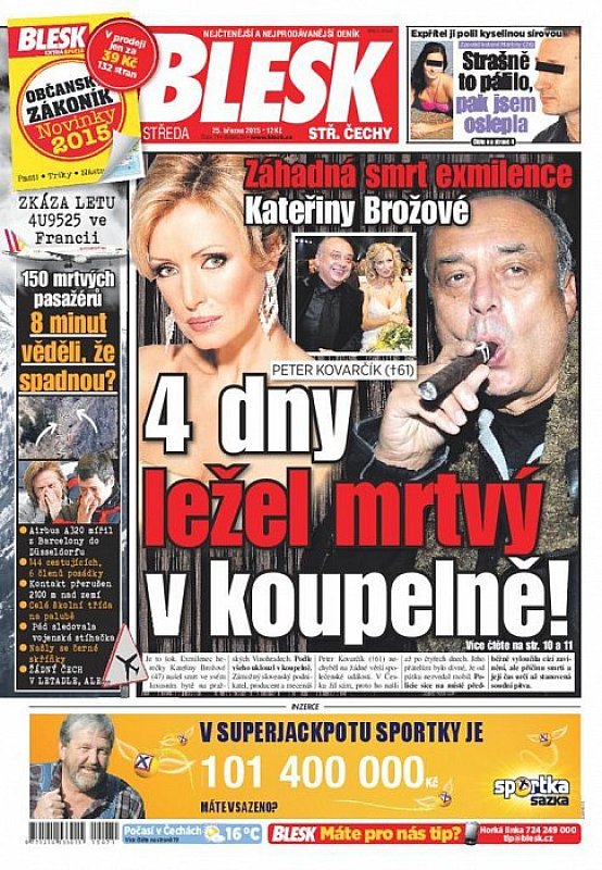V deníku Blesk ze dne 25.3.2015 najdete mimo jiné i tyto články a témata:
