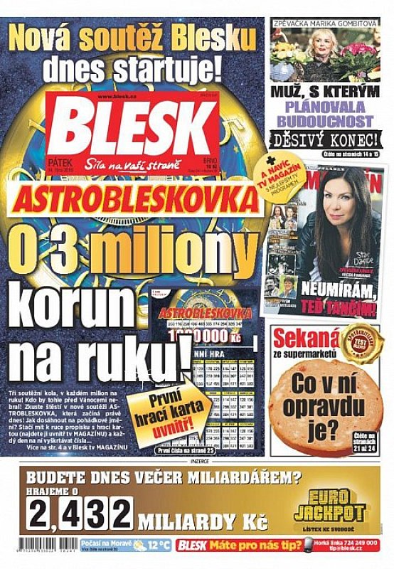 V deníku Blesk ze dne 14.10.2016 najdete mimo jiné i tyto články a témata: