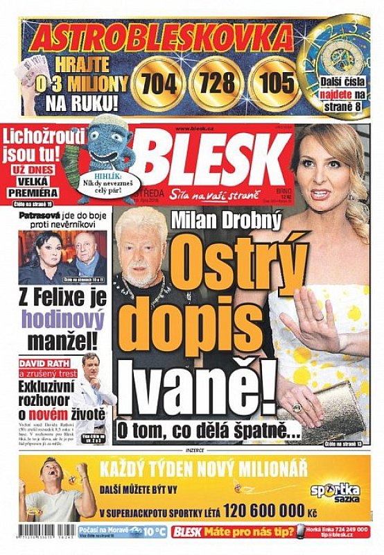 V deníku Blesk ze dne 19.10.2016 najdete mimo jiné i tyto články a témata: