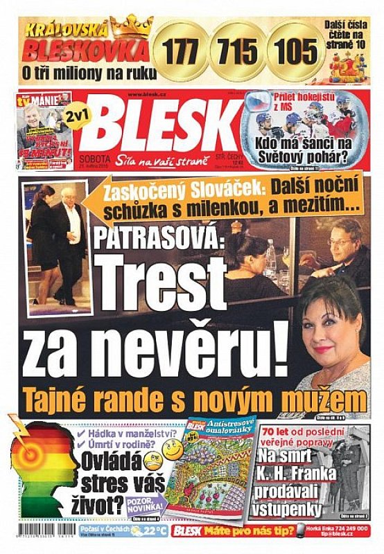 V deníku Blesk ze dne 21.5.2016 najdete mimo jiné i tyto články a témata:
