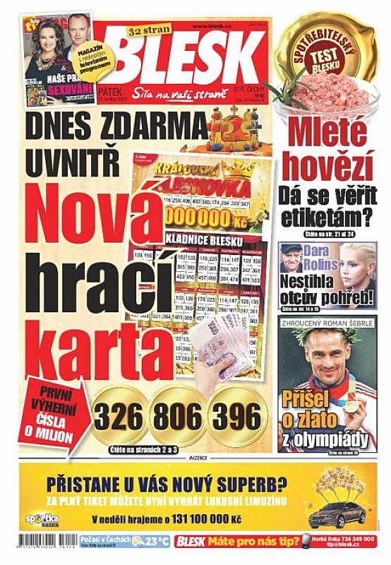 V deníku Blesk ze dne 27.5.2016 najdete mimo jiné i tyto články a témata:
