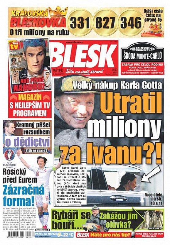 V deníku Blesk ze dne 3.6.2016 najdete mimo jiné i tyto články a témata:
