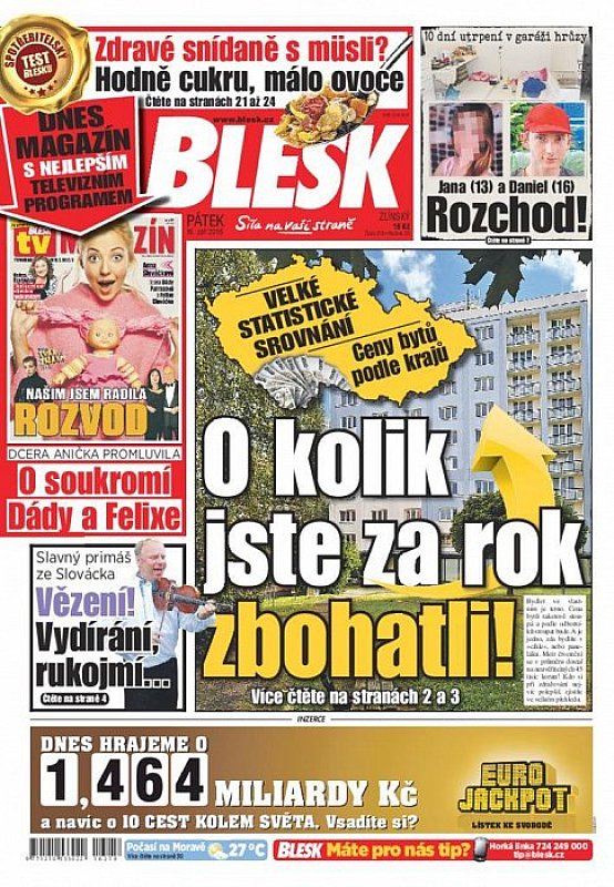 V deníku Blesk ze dne 16.9.2016 najdete mimo jiné i tyto články a témata:
