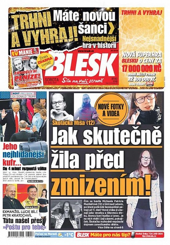 V deníku Blesk ze dne 21.1.2017 najdete mimo jiné i tyto články a témata: