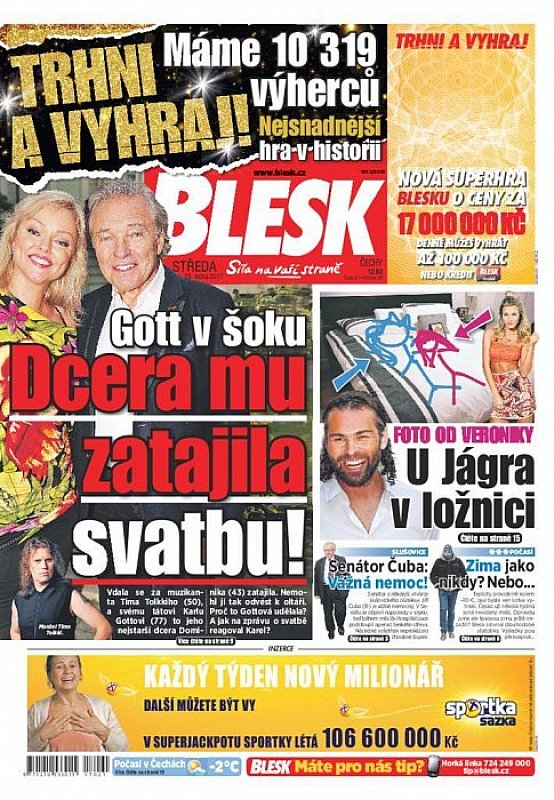 V deníku Blesk ze dne 25.1.2017 najdete mimo jiné i tyto články a témata: