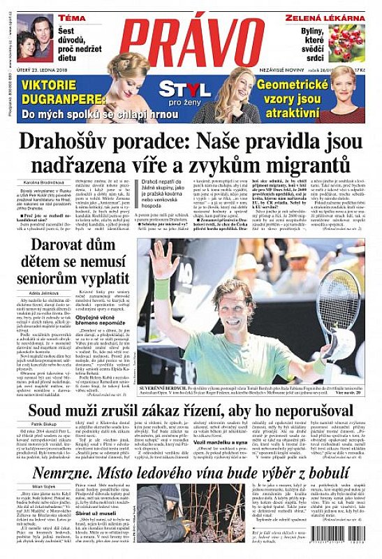 Deník Právo ze dne 23.1.2018