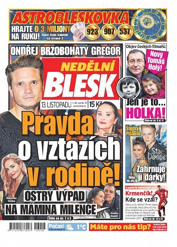V deníku Nedělní Blesk ze dne 13.11.2016 najdete mimo jiné i tyto články a témata: